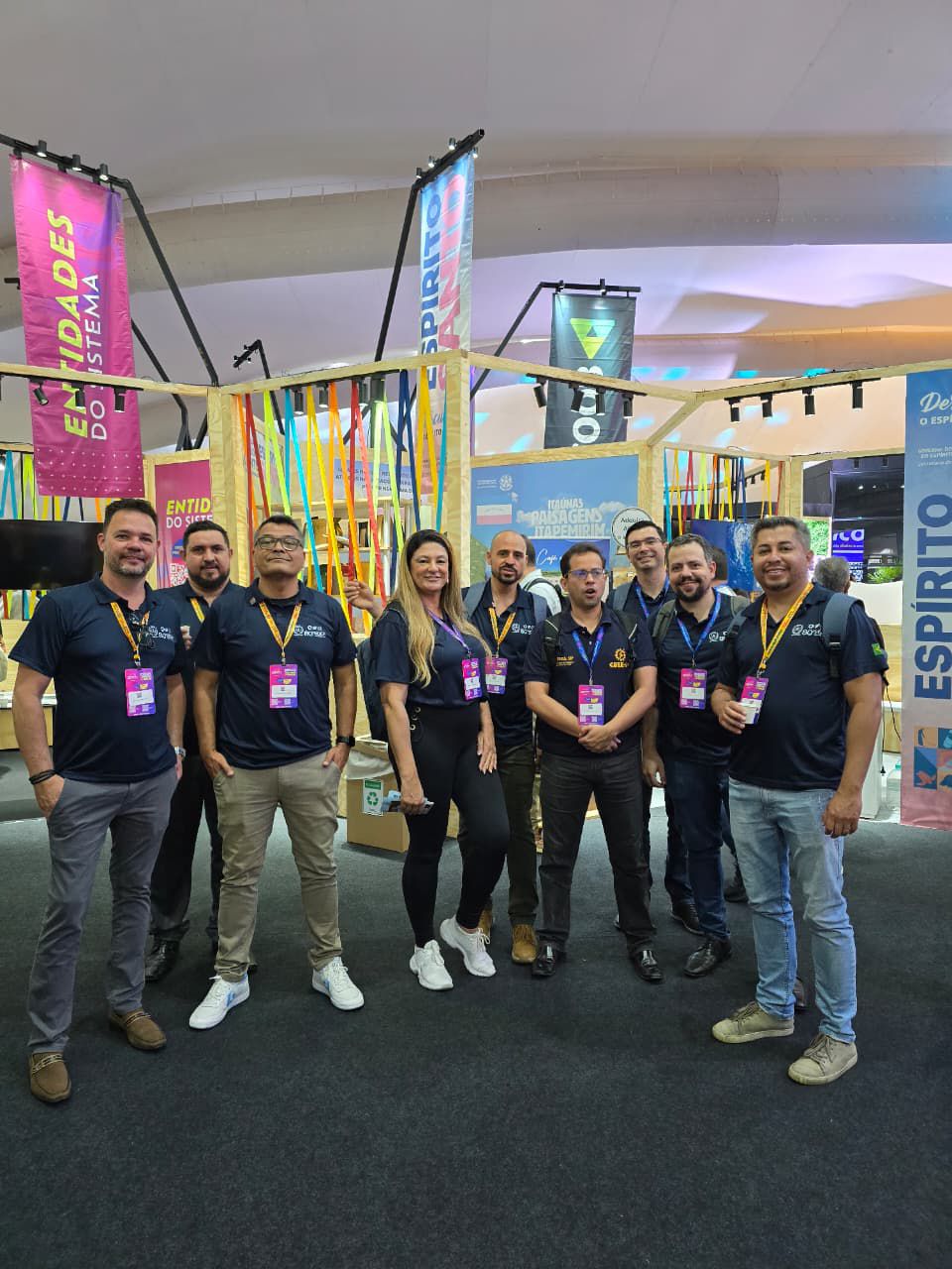 André Dias Gonsalves (primeiro a partir da direita), com diretores da AEAS, no recinto onde ocorre a 80ª SOEA, em Vitória (ES).