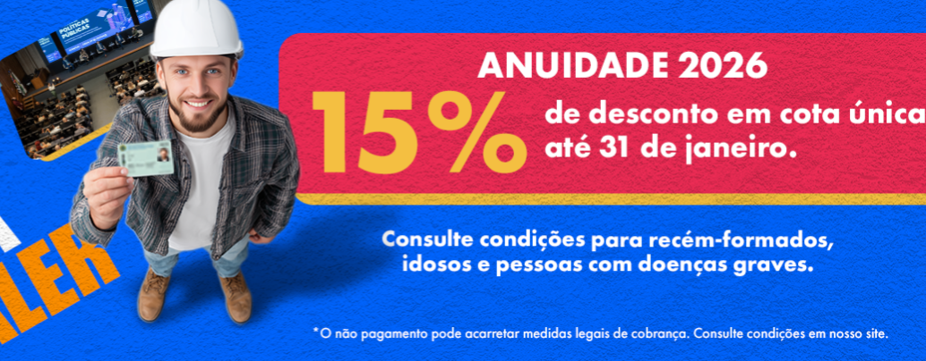 Os profissionais vinculados ao Sistema Confea/Crea-SP têm até este sábado, dia 31, para garantir 15% de desconto no pagamento da anuidade pessoa física 2026. Para o próximo exercício, o valor integral da anuidade foi fixado em R$ 704,51 para profissionais de nível superior e R$ 352,26 para nível médio. Com o desconto máximo, os valores caem para R$ 598,83 (nível superior) e R$ 299,41 (nível médio).