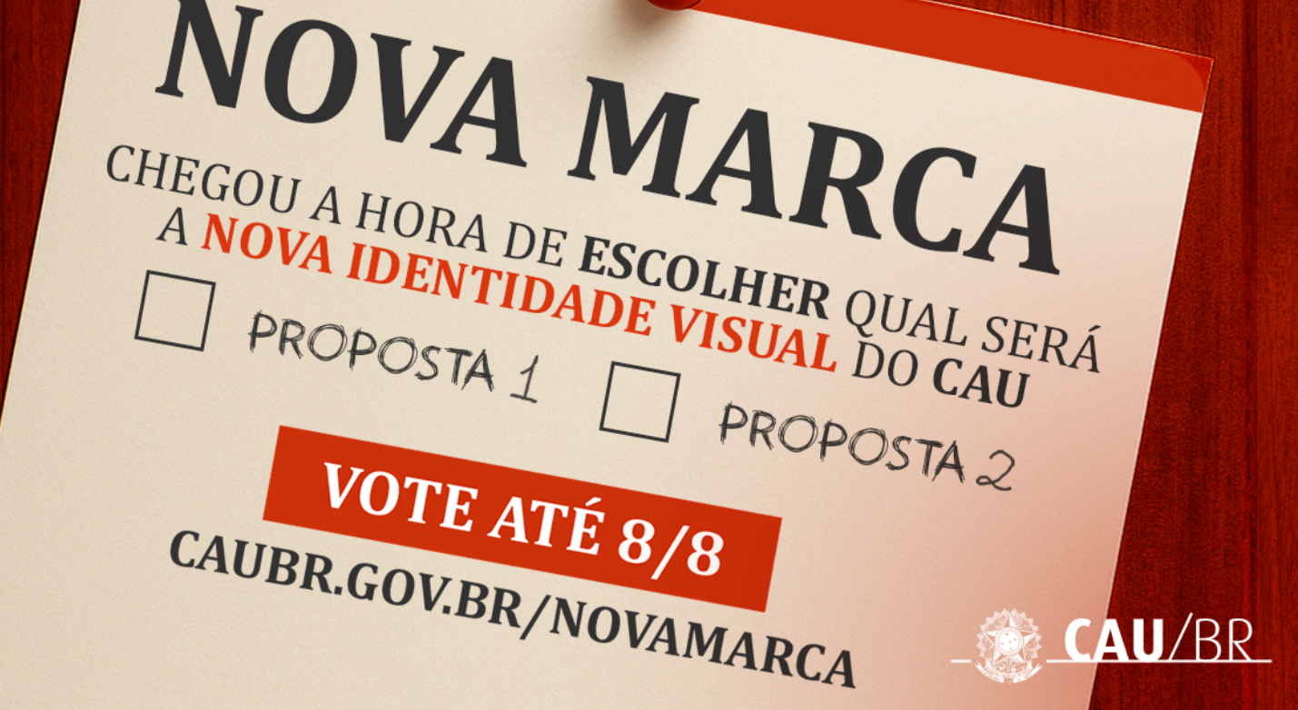 Arquitetos e urbanistas têm até o dia 8 de agosto para votar e ajudar a eleger a nova marca do Conselho de Arquitetura e Urbanismo (CAU), do Brasil. As duas propostas finalistas estão disponíveis no site do concurso, onde também é possível deixar o voto. A votação se encerra às 18h do dia 8 de agosto. Apenas profissionais com registro ativo podem votar, com um voto por CPF.