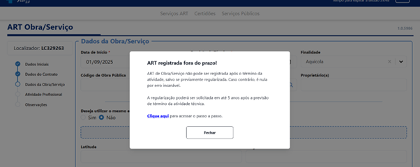 A Nova ART também incorpora funcionalidades que ampliam a praticidade, como o salvamento de rascunhos na nuvem, possibilidade de duplicar ARTs registradas, busca de endereços por mapa, preenchimento automático de contratantes previamente cadastrados, envio direto no WhatsApp após o pagamento e inclusão de QR Code para autenticação, entre outras. Além disso, o sistema alerta o usuário sobre tentativas de registro fora do prazo, garantindo maior conformidade com as normas regulamentadoras.
