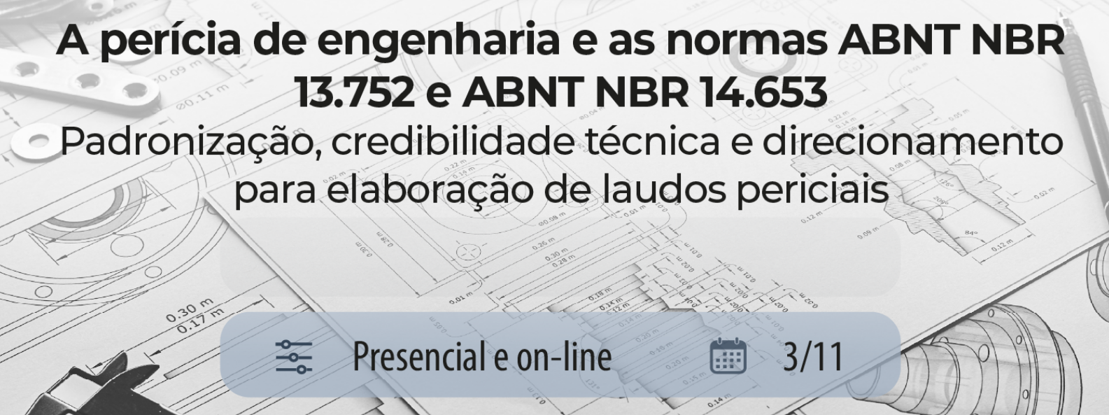 O Seminário será no auditório do térreo da Escola (piso Consolação) e de maneira on-line (Teams), das 8h30 às 12h30. O objetivo é promover a atualização e o aprofundamento dos conhecimentos para profissionais que atuam com perícias de engenharia civil, proporcionando uma visão prática e integrada sobre aspectos essenciais da atividade, por meio da análise das normas e diretrizes técnicas mais recentes.